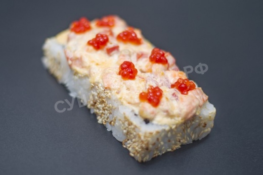 Нори, рис, кунжут, сыр креметте, омлет, перец сладкий, лосось, помидор, икра лосося,соус "яки".